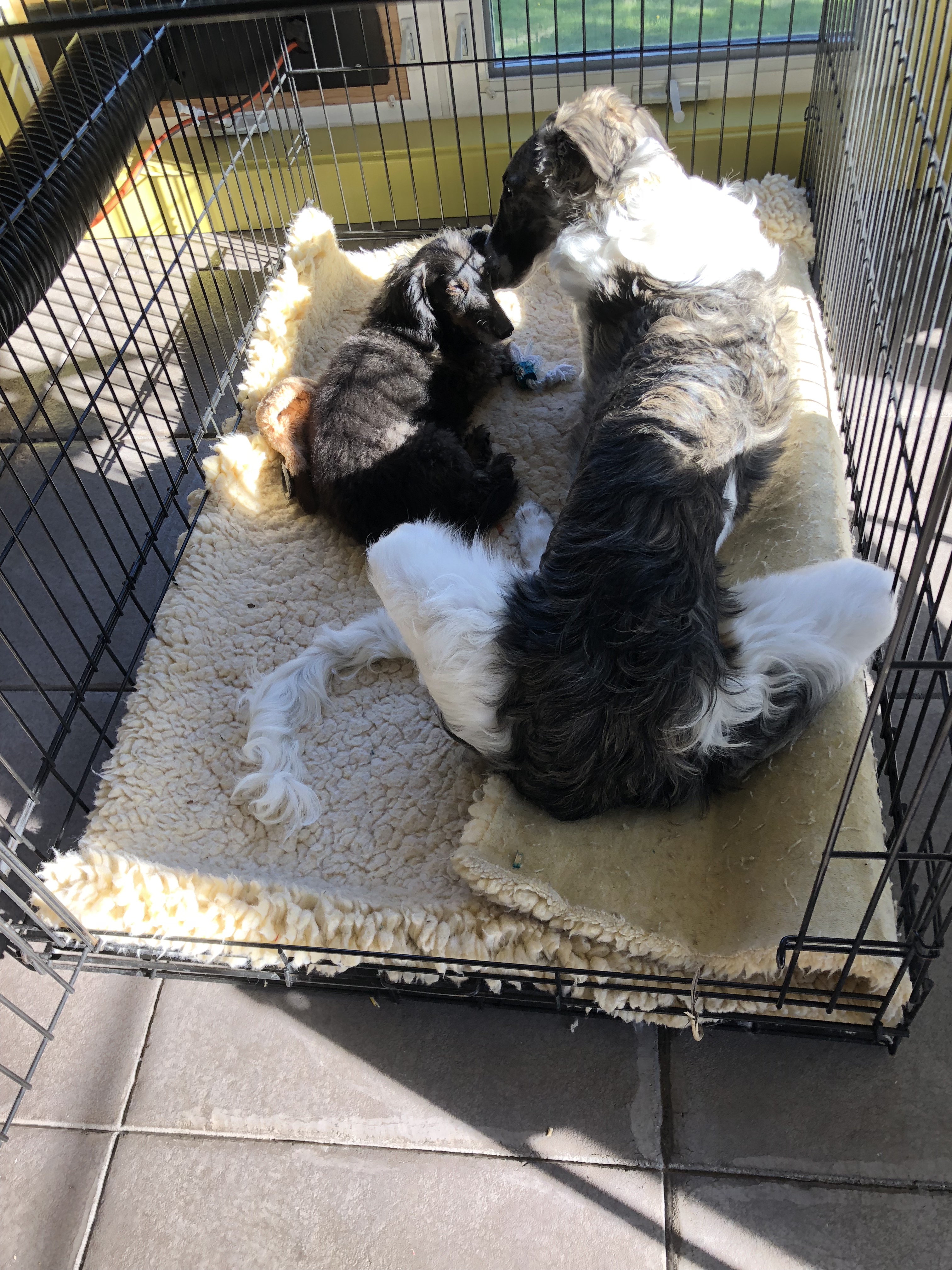 For quite a while Zoi has not rushed gates or doors. But two days past, she slithered out to cross the drive headed for our neighbor’s house. The busy road is quite some distance but still her legs are long and aching for the race. I trotted after trying not to scream for that sound is sure to send her fleeing. She stopped under a tree on the other side of the garage and grabbing her relievedly, I hugged her gripping underneath her deep rib, I guided her back toward my now rope carrying husband. I wrapped the rope round her naked neck and insisted gently she come to yard with gate and fence. My racing heart. With a dog, shit happens.