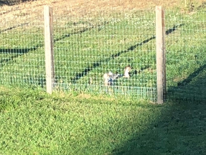Now let’s talk Flock of Seven and their Geese. So with the first round of Roasters upon which Oldest cut her chicken tending teeth, there was a hen who I swear to all that’s feathered, is a dog. One evening when that first batch were about eight weeks along, I went down to sit with Oldest as she tended and found my lap adorned with a big fat red feathered sitting bird who settled on my legs and went to sleep. I kid you friggin not.