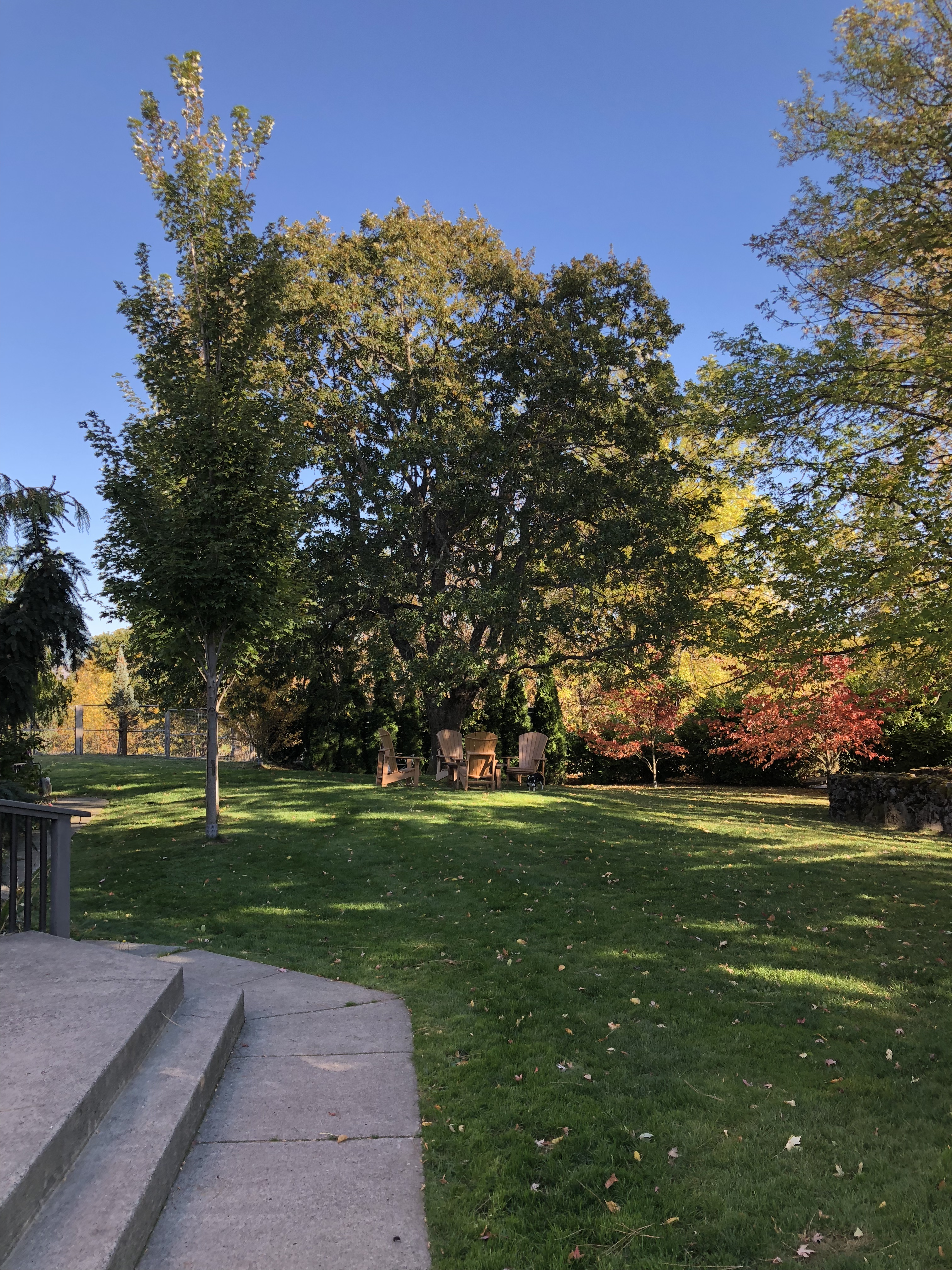 Mother Oak stands by our kitchen and I feel her embrace all day. I trust her wisdom and her age. Her acorns dress the lawn and Zoi and Corgiette love to munch them.