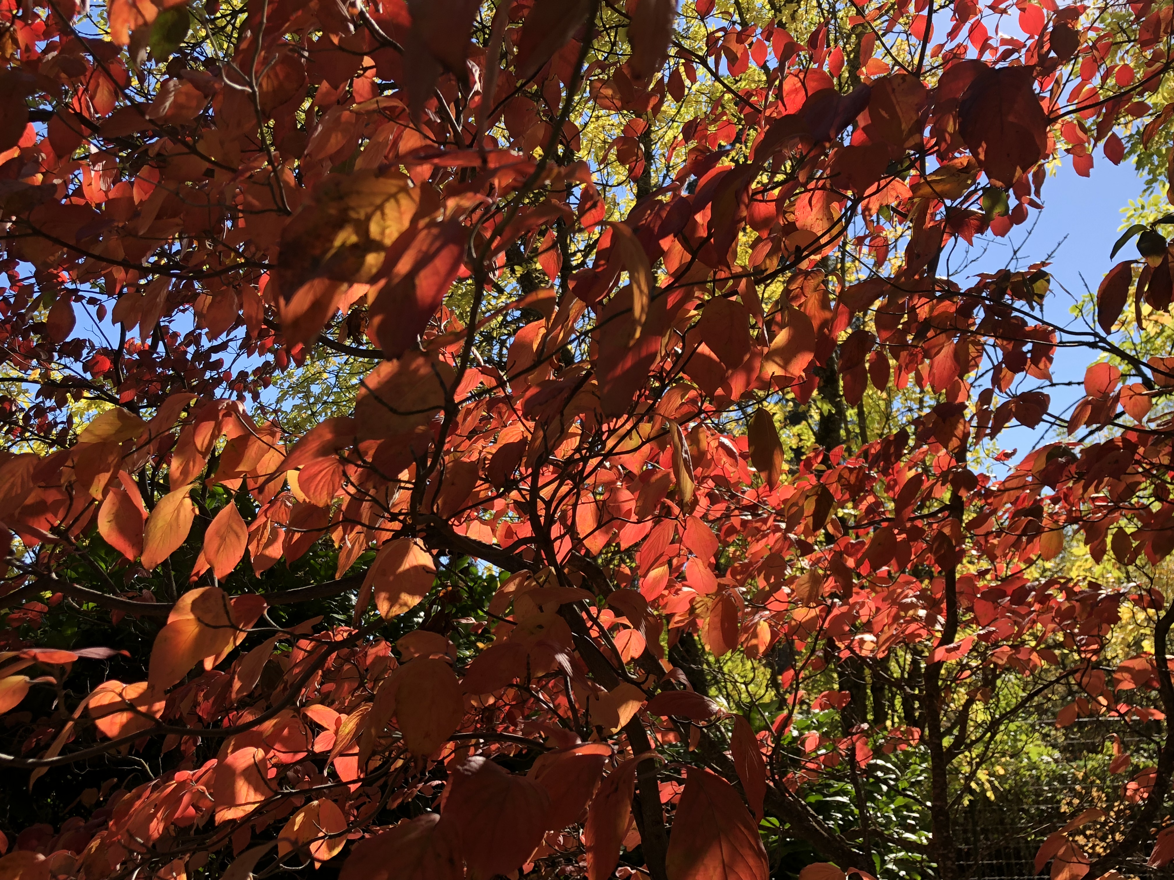 I had a moment with the sun and leaves. It is that flaming time of year in places like this where seasons edge with different stage of life and slumber. Fall is the time where trees who leaf must release this year’s tresses and as they come to loose their grip the leaf burns through from green to yellow red and sometimes even purple.