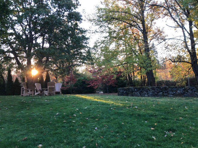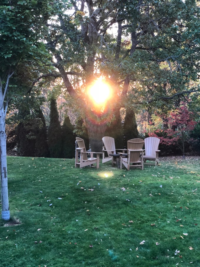 The day dawned as I stood outside with Zoi and Corgiette and Oldest. The sun disced through the middle of Mother Oak before she shone her light across the ground. And slowly she lit the world as puppy chased the other.