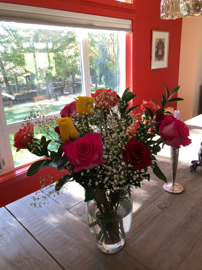 The roses Husband brought me just the other day are glowing on my table.
