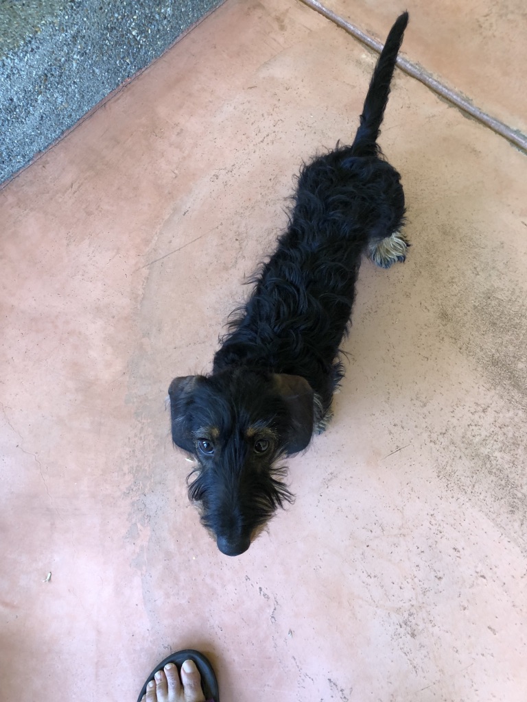 Pup woke gleeful she could lick. Her bladder warranted release so out we popped to the third floor deck which hits a height of lookout on a ship. I spied a school of squirrels racing for their morning raid of chicken feed. Must let Little out for hunting day today.